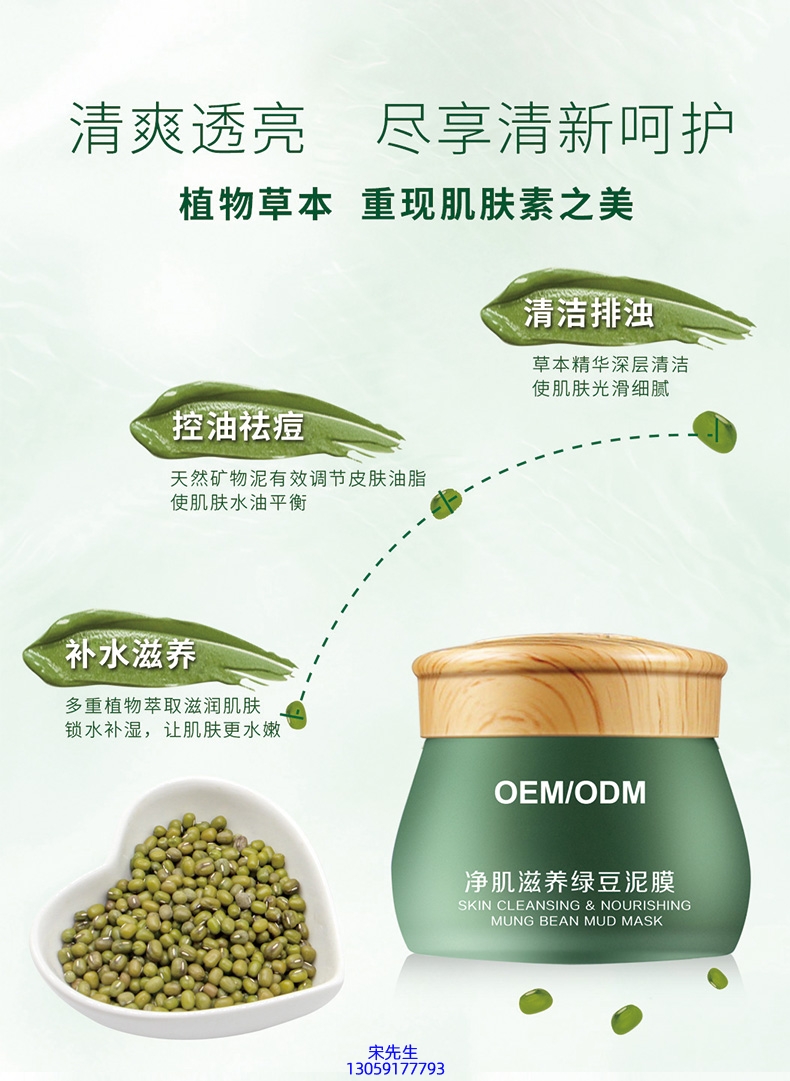 迪丽_泥膜深层清洁补水保湿绿豆泥膜 泥膜oem/OEM加工贴牌